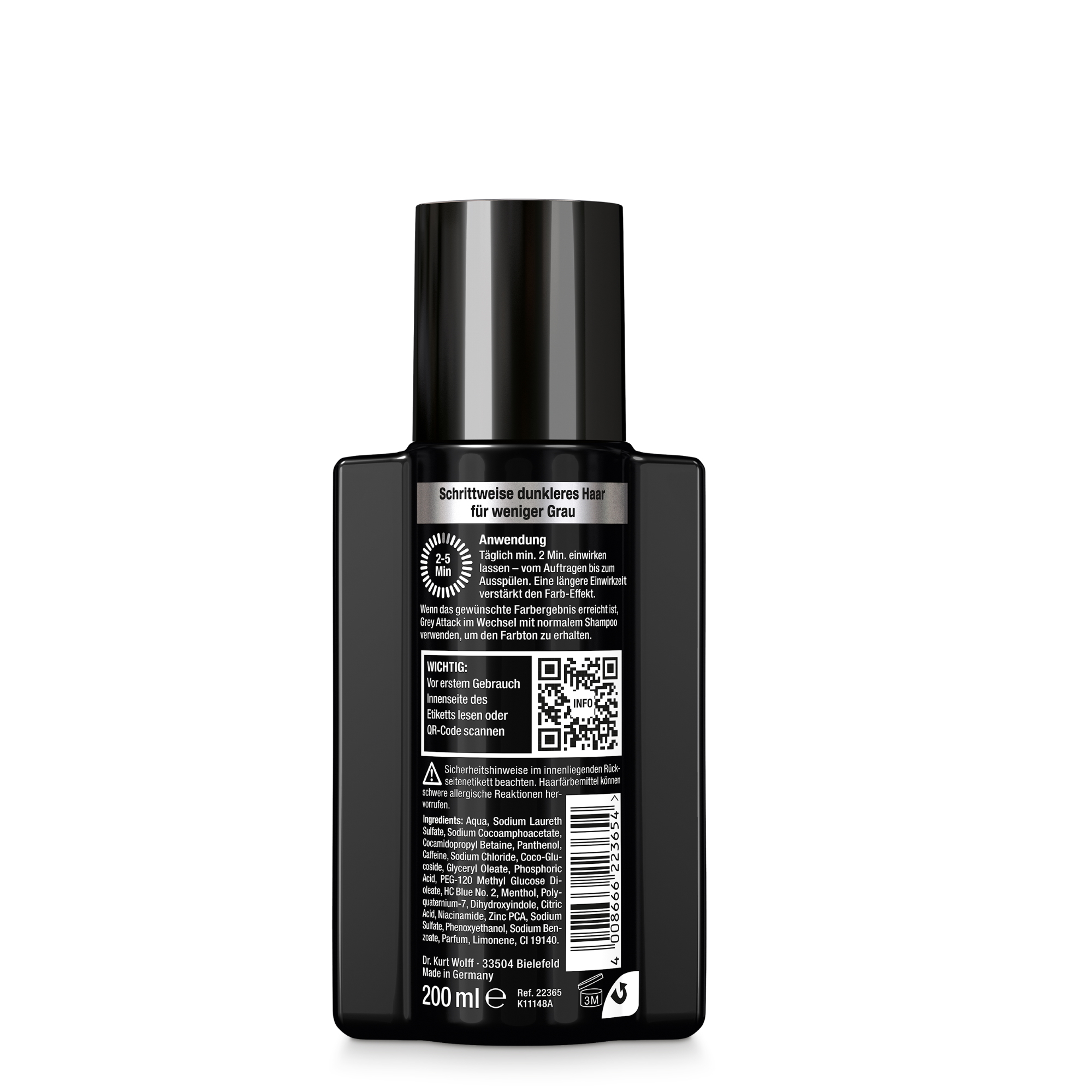 2 – 5 Minuten auf der Kopfhaut lassen – vom Auftragen bis zum Abspülen. Dabei gilt: Eine längere Einwirkzeit verstärkt den Farb-Effekt! In den ersten Wochen täglich anwenden, bis das gewünschte Farbergebnis erreicht ist. Anschließend abwechselnd mit normalem Shampoo verwenden, um den Farbton zu erhalten. Die Farbintensität ist somit durch Einwirkzeit und Anwendungshäufigkeit steuerbar.