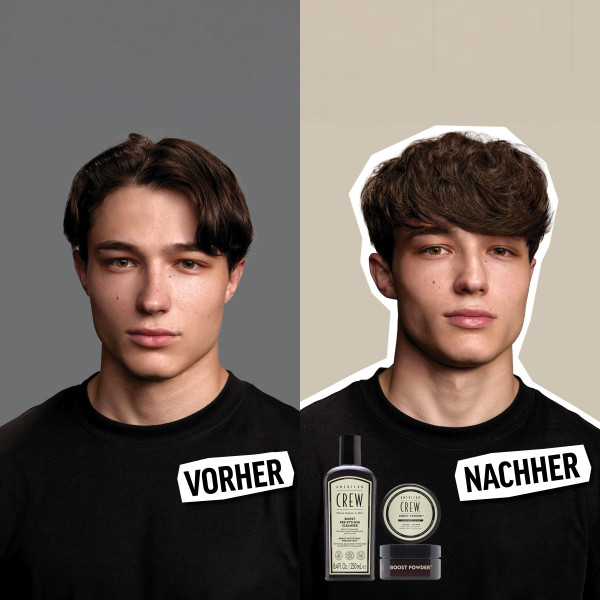 American Crew présente les shampooings pré-coiffants - nos premiers shampooings qui font passer votre coiffure de 80 % à 100 %. Ils nettoient les cheveux et les préparent au coiffage afin que votre coiffure puisse atteindre son plein potentiel. Le nettoyant pré-coiffage Boost est la solution ultime pour les hommes qui souhaitent donner du volume et de l'ampleur à leurs cheveux. La technologie derrière le shampooing pré-coiffant Boost produit une mousse riche qui élimine l'excès de sébum tout en préservant l'hydratation des cheveux. Il soulève les fibres capillaires de la racine à la pointe, créant plus de volume et d'ampleur - pour des cheveux légers, plus volumineux et prêts à être coiffés. Le shampooing pré-coiffant Boost nettoie en profondeur les cheveux et le cuir chevelu, les apaise et équilibre le microbiome du cuir chevelu. Il est parfait pour les cheveux fins, clairsemés et sans vie de toute longueur. Découvrez notre parfum boost rafraîchissant avec un mélange de notes d'agrumes et d'herbes et une finition boisée. Appliquez simplement sur cheveux mouillés, massez les cheveux et le cuir chevelu, puis rincez et répétez si nécessaire. Combinez le nettoyant Pre-Styling Boost avec la poudre Boost légère et mate pour encore plus de volume et de plénitude aux racines. Ne vous contentez pas de nettoyer, mais pré-coiffez ! Application: Appliquer sur cheveux mouillés, masser les cheveux et le cuir chevelu, puis rincer et répéter si nécessaire. Le shampooing prépare les cheveux au coiffage en créant une bonne base pour que les cheveux soient plus faciles à coiffer. Il ajoute instantanément du volume et du volume de la racine aux pointes et hydrate sans alourdir les cheveux. Il aide également à maintenir l’équilibre du microbiome du cuir chevelu. Nettoyant pré-coiffant Boost d'American Crew 250 ml Code EAN: 738678004210
