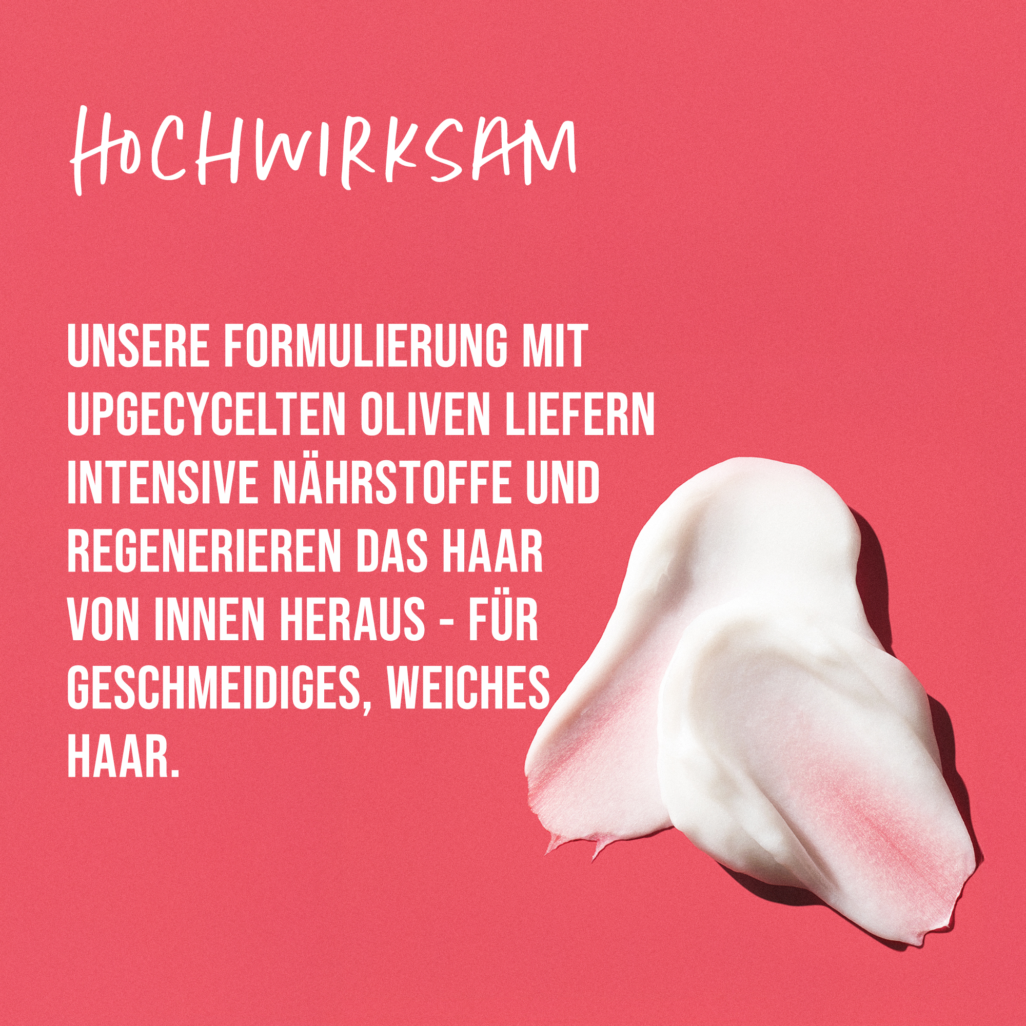 Spécialement conçu pour les cheveux difficiles à coiffer : sa formule à base d'olive recyclée nourrit intensément, réduit les frisottis, lisse la structure capillaire et protège des agressions extérieures.